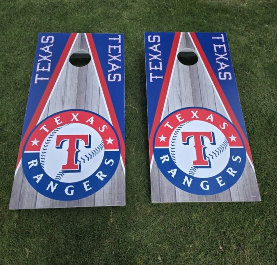 Bring the competitive fun of tailgates and backyard parties with this Texas Rangers cornhole set.